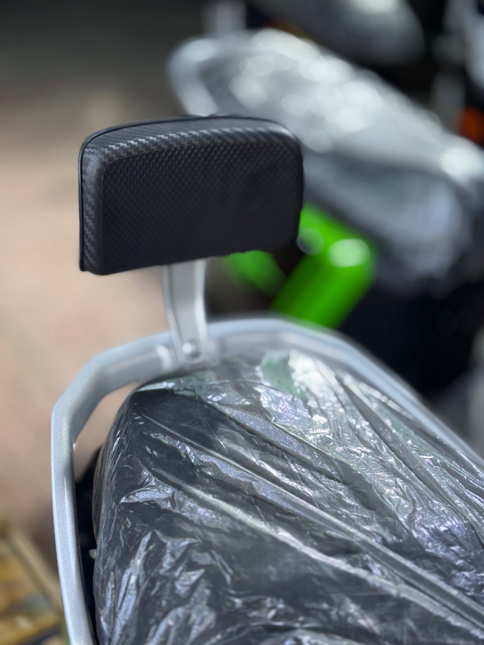 كرسي مريح مع مسند، شاشة رقمية أنيقة، وصندوق واسع تحت السّيت باش تحط حاجتك بأمان.