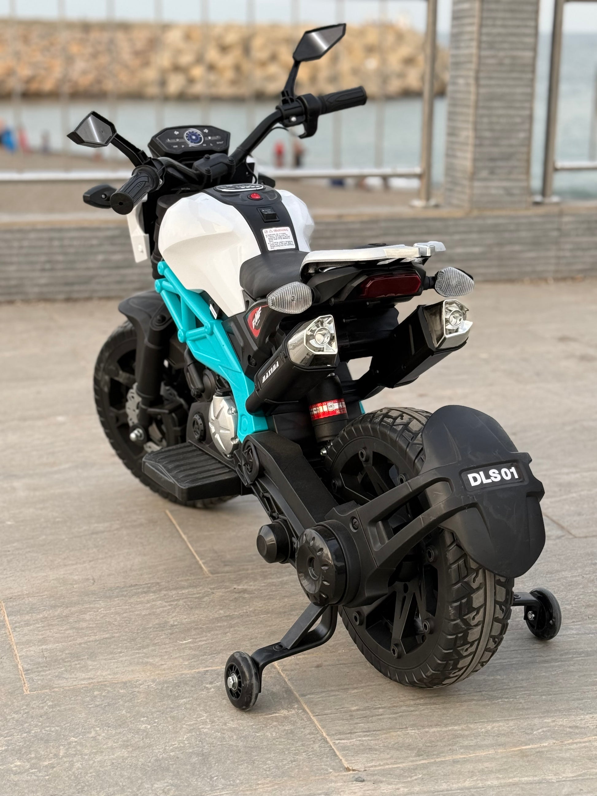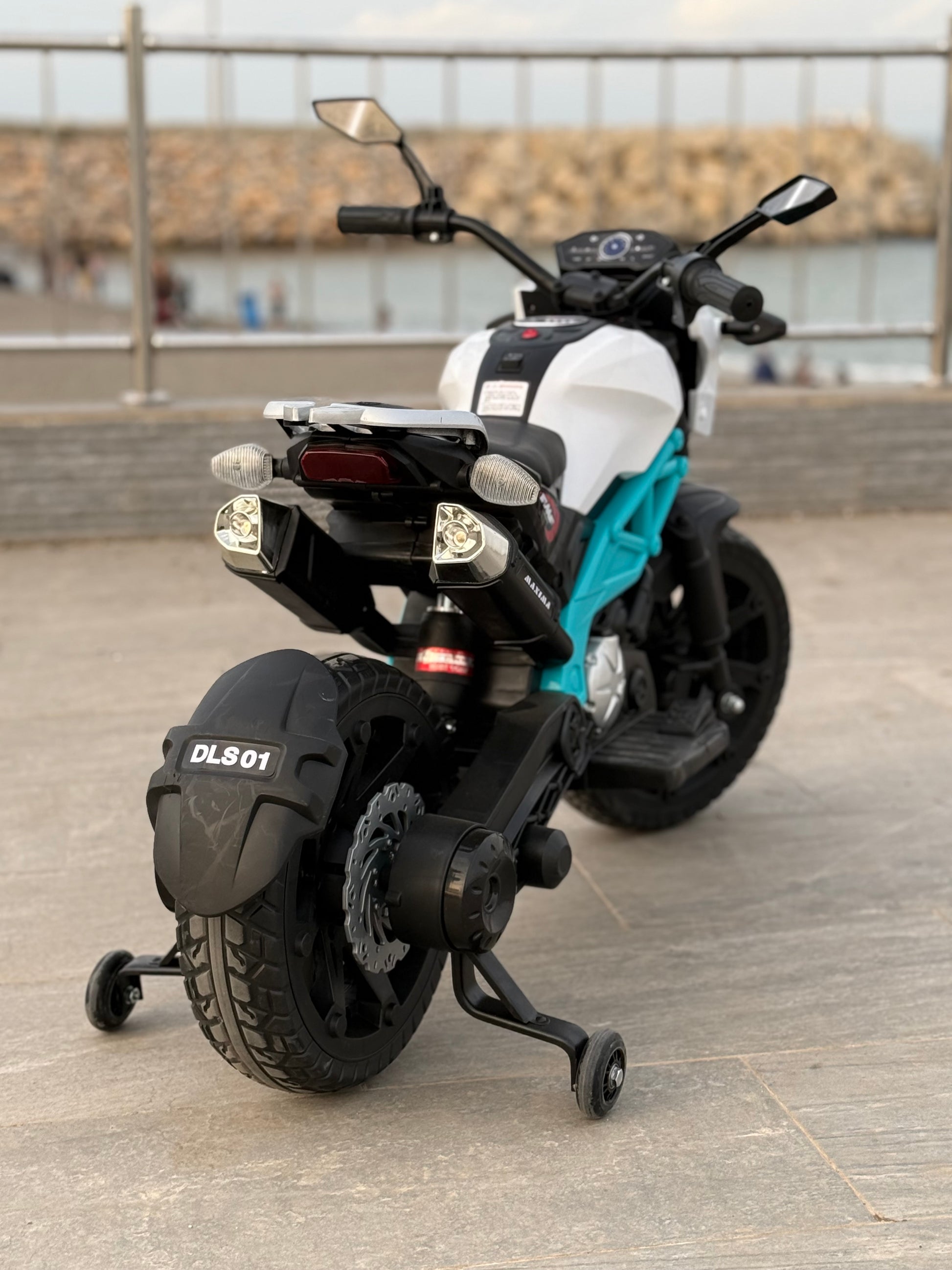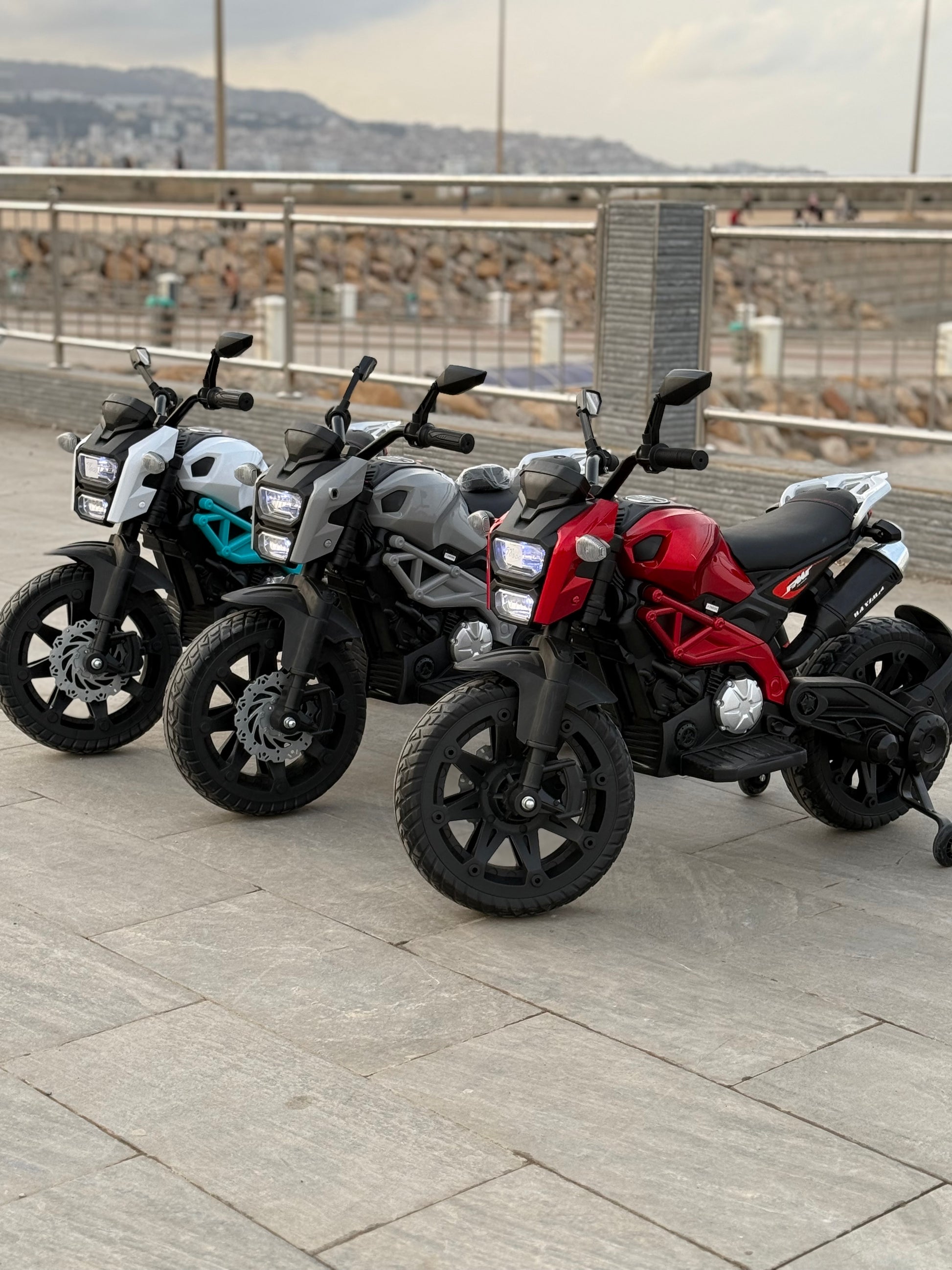 دراجة نارية كهربائية للأطفال، تصميم رياضي يشبه الحقيقي! فيها أضواء LED، صوت موتور واقعي، وحتى موسيقى!